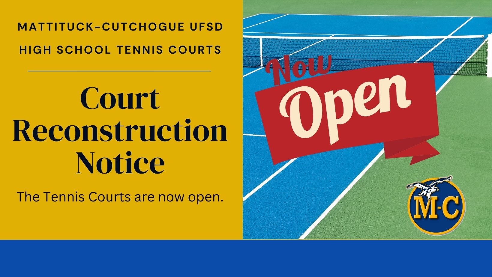 Reconstruction of the Mattituck High School tennis courts has been completed and the courts are now open.